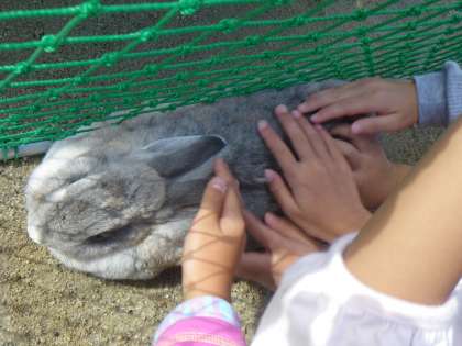 「うさぎの毛はふわふわしてるね。」「耳はたれていて,耳の穴は見えないよ。」などなど,1年生のみんなは,たくさんの発見をしていました。