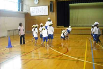 運動会の練習が始まりました。5年生は騎馬戦をするので,まずは組む練習から始めました。初めて組む騎馬は,慣れない,腕が疲れる,上に乗る人は高いということで,「しんどい〜」や「高いーー!」などという声が聞こえました。