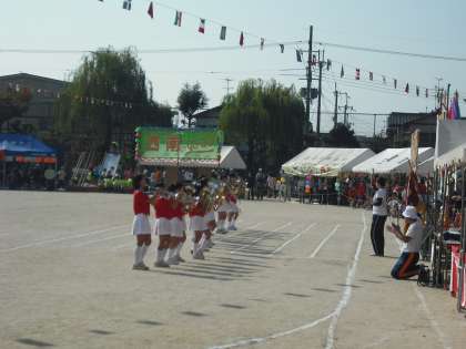 開会式の後は、樫原小学校金管バンドによる演奏がありました。演奏しながら移動するというマーチング演奏で、耳だけでなく目でも楽しませてくれました♪そして曲は「銀河鉄道999」を演奏し、会場を盛り上げてくれました。