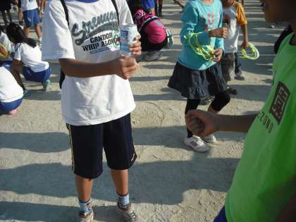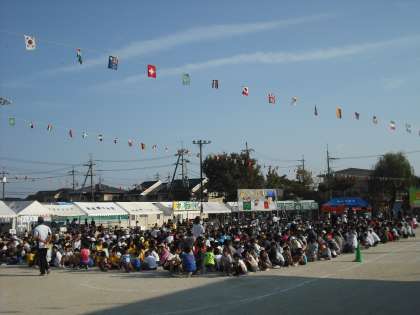 体育祭に参加していたほとんどの人がグランドに集まり、ジャンケンをしました。最初はあふれるぐらいいた人も、回数を重ねると残りは数人まで減りました。みなさん今日の運はどうでしたか。