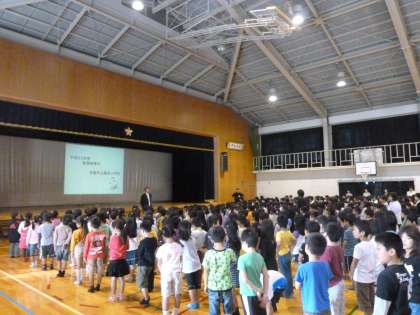 前期終業式があり、今まで頑張っていたボランティアの話を聞いたり、今までを振り返ったりしたりしました。