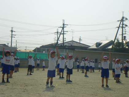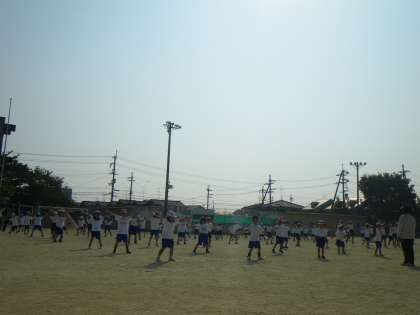運動会で踊るダンス「元気をチャージ」の練習をがんばっている1年生。