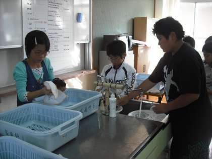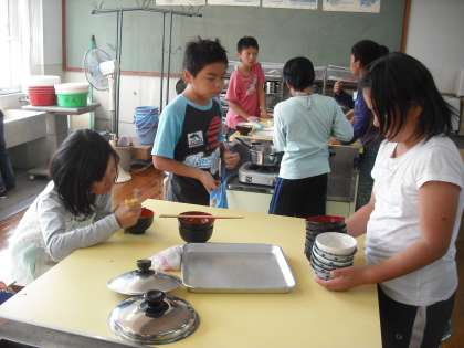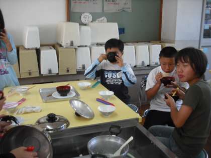 家庭科の学習で,調理実習をしました。献立は,ごはんとみそ汁です。