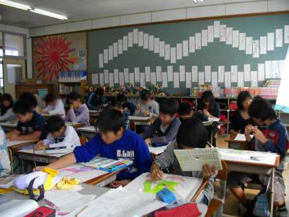 7つの場面から成っており,一場面ずつ聞き取りをしながらメモしました。その後,自分の描きたい場面を選んで絵に表現しています。少しずつ作品が仕上がってきており,それぞれがお話の特徴をしっかりと捉えた絵になっています。