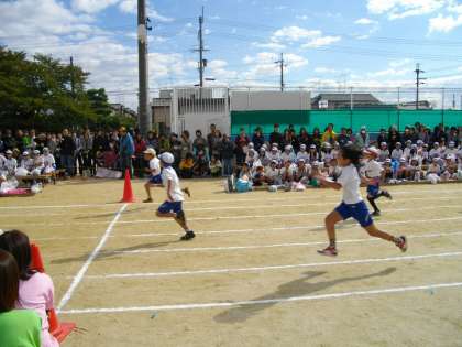 3年生の80m走が始まりました!必死に走っている3年生,必死に応援している各色の子ども達はすごく輝いていますよ☆☆