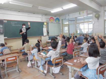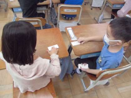 二人組でカードを出し合い,どちらの数字が大きいか,ゲームをしながら考えました。