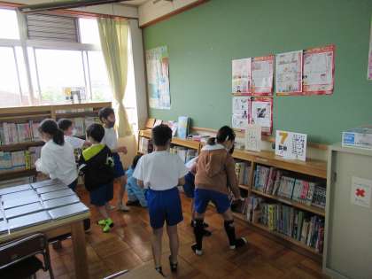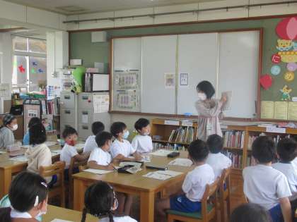 司書教諭の米田先生に図書館オリエンテーションをしていただきました。図書室の使い方はもちろんのこと,ラベルや分類の説明など,子ども達ははじめて知ることも多く興味をもってお話を聞くことができました。これからたくさんの本に出会い,心を豊かにしてほしいと思います。