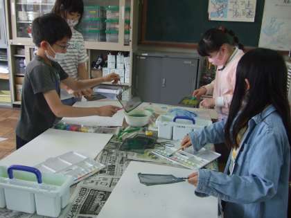 図画工作科「絵の具でゆめもよう」の学習をしました。