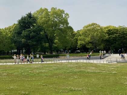 資料館の見学の後は、グループごとに、平和公園内オリエンテーリング。地図を見ながら,ポイントをまわりました。