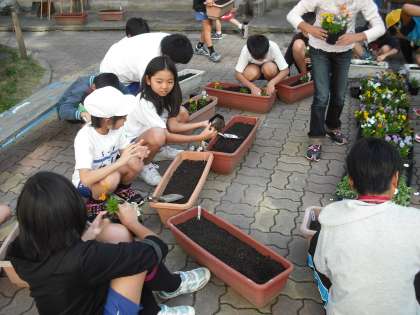 今日の昼休みに栽培委員会で新しくプランターになえを植えました!個人のプランターなので,枯れないように注意して育てましょうね!3月の卒業式まで花を咲かせておきたいですね☆