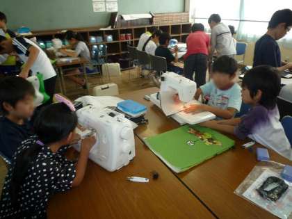 6年生は家庭科の授業で,ナップザック作りに取り組んでいます。