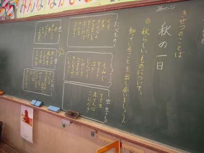 国語「秋の一日」の学習で,「秋」から思いつくことを交流しました。