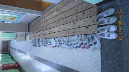 図書室の前にきれいに並んだ上靴!3年生のあるクラスの