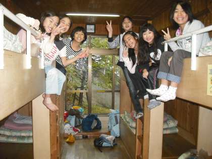 野外の活動から帰ってきました。点呼を受けて,それぞれの部屋に入りしばらく休憩します。午後4時にシーツを取りに行って,自分の寝床を用意します。