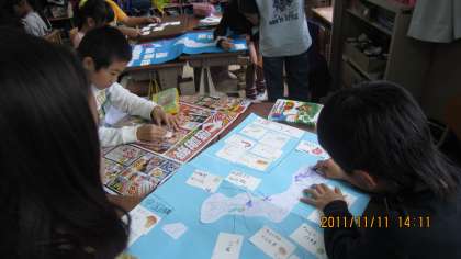 グループで「食べ物の産地調べ」をしています。