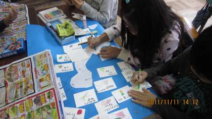 日本地図に都道府県と産地を書き込んだカードを貼ります。