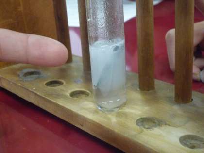 アルミニウムを入れた試験管が,ブクブクと反応し始めると