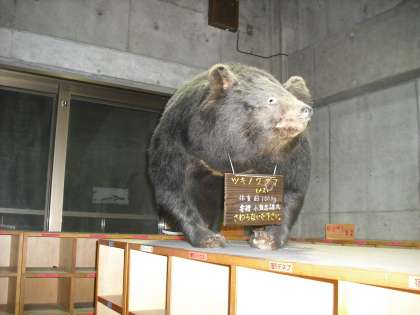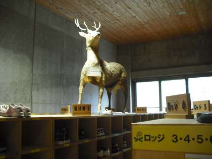 みんなの靴を置いている靴箱の上に,山の動物のはく製が飾ってあります。今にも動き出しそうで少しこわい感じですが,興味深く見つめていました。