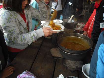 おいしいカレーができあがりました。グループによって味が少しずつ違いますが,個性があふれたカレーです。みんながんばって作りました。