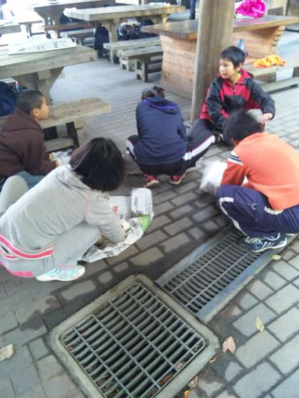 一生懸命に板をこすっています☆どんなものになるかとても楽しみですね♪