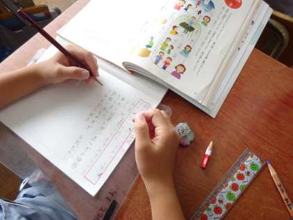 国語の「漢字の広場」の学習で,3年生で習った漢字を使って文を作りました。主語と述語を大切にしながら,一つの文にたくさん漢字を使えるよう,一生懸命考えていました。