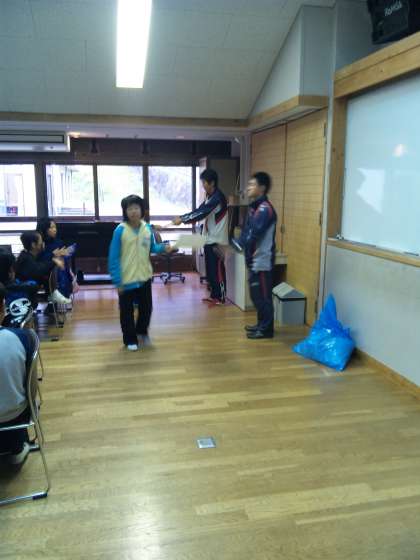 オリエンテーリングの表彰を行いました。成績が発表され,歓声がわいていました。