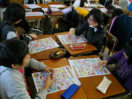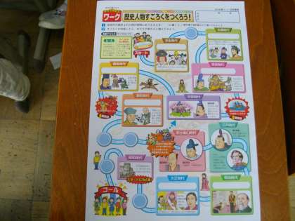 今まで学習してきた日本の歴史をふり返りながらすごろくに挑戦しました。子どもたちは,歴史の登場人物,出来事を確認しながら楽しく活動していました。