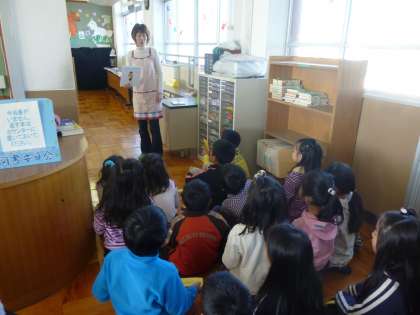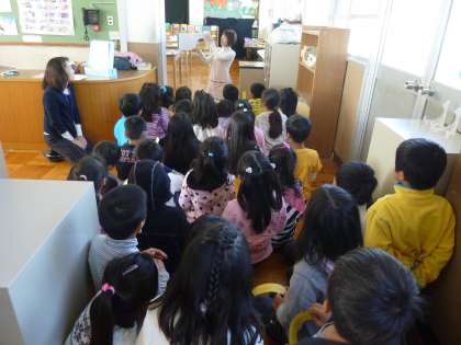選びながら、お手伝いしていただいているお家の方から、本を読んでもらう場面もありました。