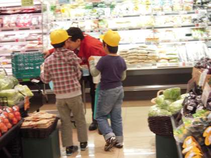 マンダイでのインタビューの様子です。子ども達の目線でていねいに答えていただきました。その後,広い店内を見て回ったり,お店の奥の方の様子まで見せていただいたりしました。めずらしいところまで見せてもらって,子ども達はとても喜んでいました。
