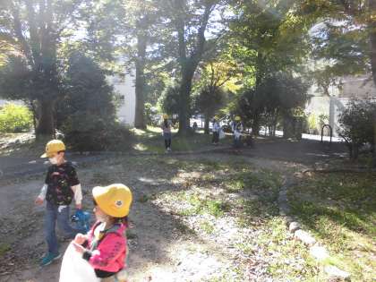 史跡公園では、どんぐりやまつぼっくり、きれいな色の葉っぱなどを
