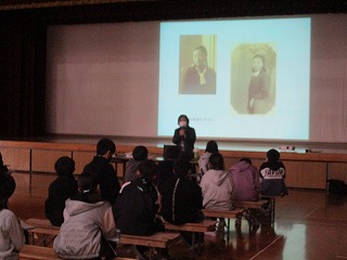 総合的な学習の時間に、被爆体験伝承者の方による講話をしていただきました。臨場感があるお話だったので、戦争や平和について考えを深めることができました。