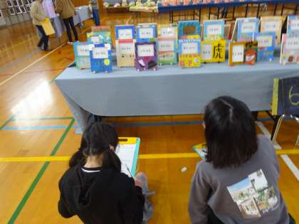 今日から始まった図工展の鑑賞をしました。各学年の作品を見て,「すごいなぁ。」「どうやって作ったんだろう。」と思わず言ってしまう子どもたちでした!