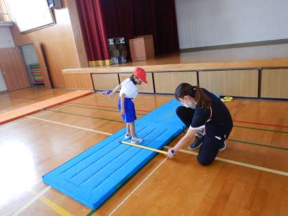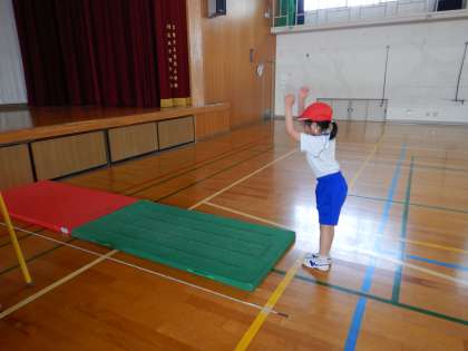 遠くに跳ぼうと頑張りました。