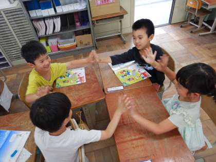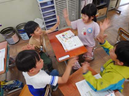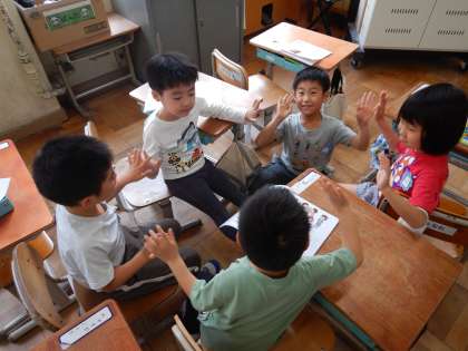 一人で手拍子をしたり、班で手拍子をしたりして楽しんでいます。