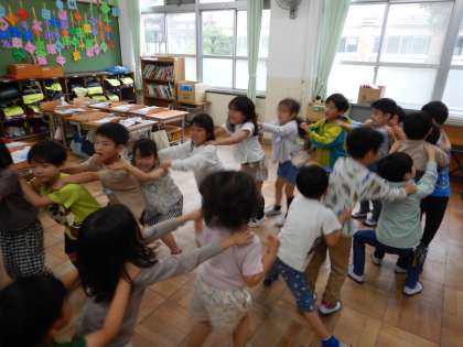 「シロクマのジェンカ」の音楽に合わせてみんなで列を作ってリズムあそびをしました。
