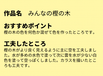 できた作品はおすすめポイント等を記入し、ロイロノートにまとめました。