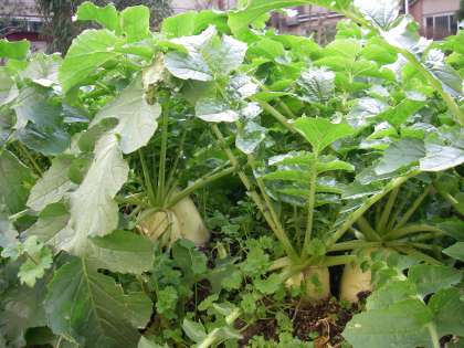 今週月曜日,かしのみ学級の畑にしっかりと育った大根を収穫に行きました。たっくさんの大根が立派に育っています。まずは1本抜いてもってかえることにしました。