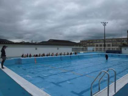 今日から水泳学習が始まりました。今週は超低水位で、かしのみ学級、1・2年生が学習をはじめます。今日は、プールでのルールを学んだあと、身体に水をかけたり、水の中をカニさん歩きをしたりして、水慣れをしました。これから順次始めていきます。