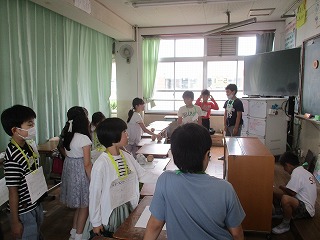 1組は「まと当てゲーム・シルエットクイズ」、2組は「はこあて」、3組「なぞさがし」、4組は「ピンポン玉チャレンジ」をしました。お客さんと店員さんの視点から、どうしたらつながりが深まるかを考えながら取り組みました。