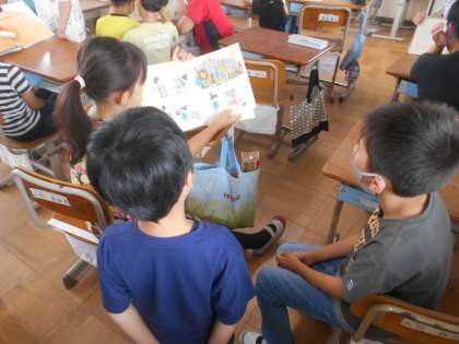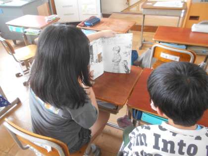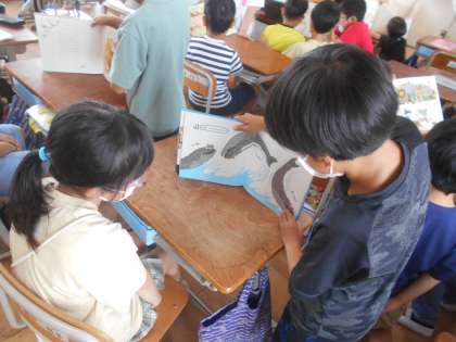あじさい読書週間の取組の1つで、4年生から3年生へ本の読み聞かせをしました。なかよしペアの子に向けて、「どんな本だったら興味をもってくれるかな」と、本を選ぶところから一生懸命に考えながら読み聞かせをすることができました。3年生からは、「おもしろかった」「また読んでみたい!」と感想を言ってもらいました。