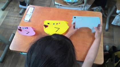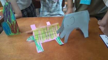 図画工作の授業で、画用紙を半分に折って立たせた作品を作りました。