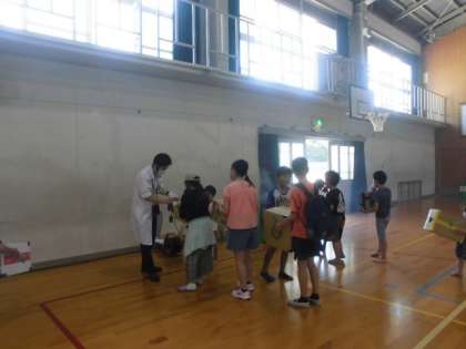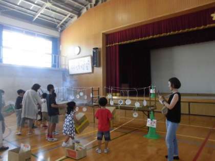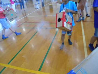 空気砲です。ドーナツ雲が出てきたかな?的をねらって、箱をポン!