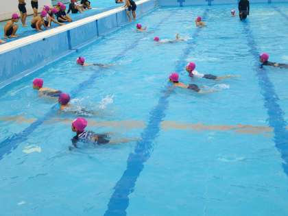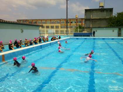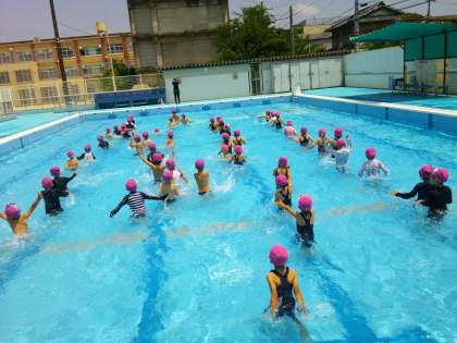 今週は、胸までの深さになり、少しずつ顔をつけたり、もぐったりすることにも挑戦しています。