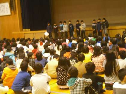 給食委員会からは,2月6日〜10日の給食週間についての話があり,豆つかみ大会や給食時間に栄養のことを考えたり,マナーを守ることなどの取り組みをしていくことを紹介してくれました☆