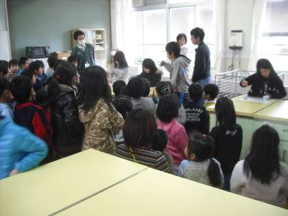 各3クラスが同じようなリズムで豆をつまんでいきますが,少しペースを上げた1組が23つぶをつまみ,ファーストラウンドを突破しました♪