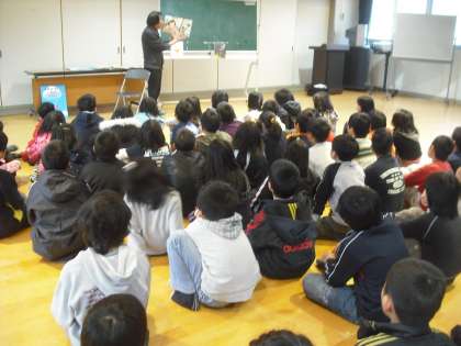 今日は,児童文学を研究されている「大石すすむ」先生が樫原小学校に来ていただきました!