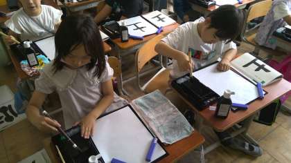縦書きにも初挑戦! みんなお手本を見て頑張っていました。