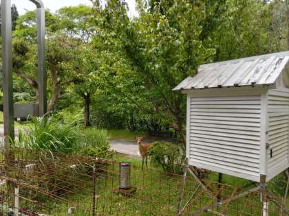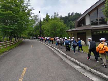 みんなが到着すると、シカがお出迎えしてくれました。空も少し晴れてきました。これから入所式です。