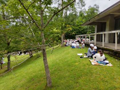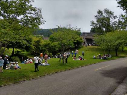 楽しみのお弁当タイム。木陰は涼しいです。グループでおいしくいただきました。