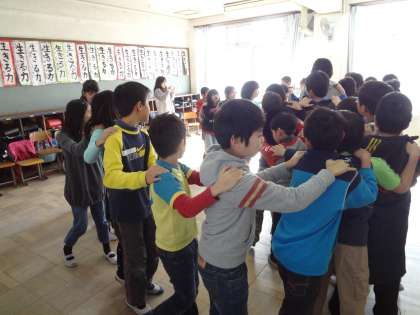 4年生は今週と来週でかしのみ学級と交流します。今日は4組が交流しました。各クラスで考えた遊びを一緒にして遊びました。来週は2組と3組です。